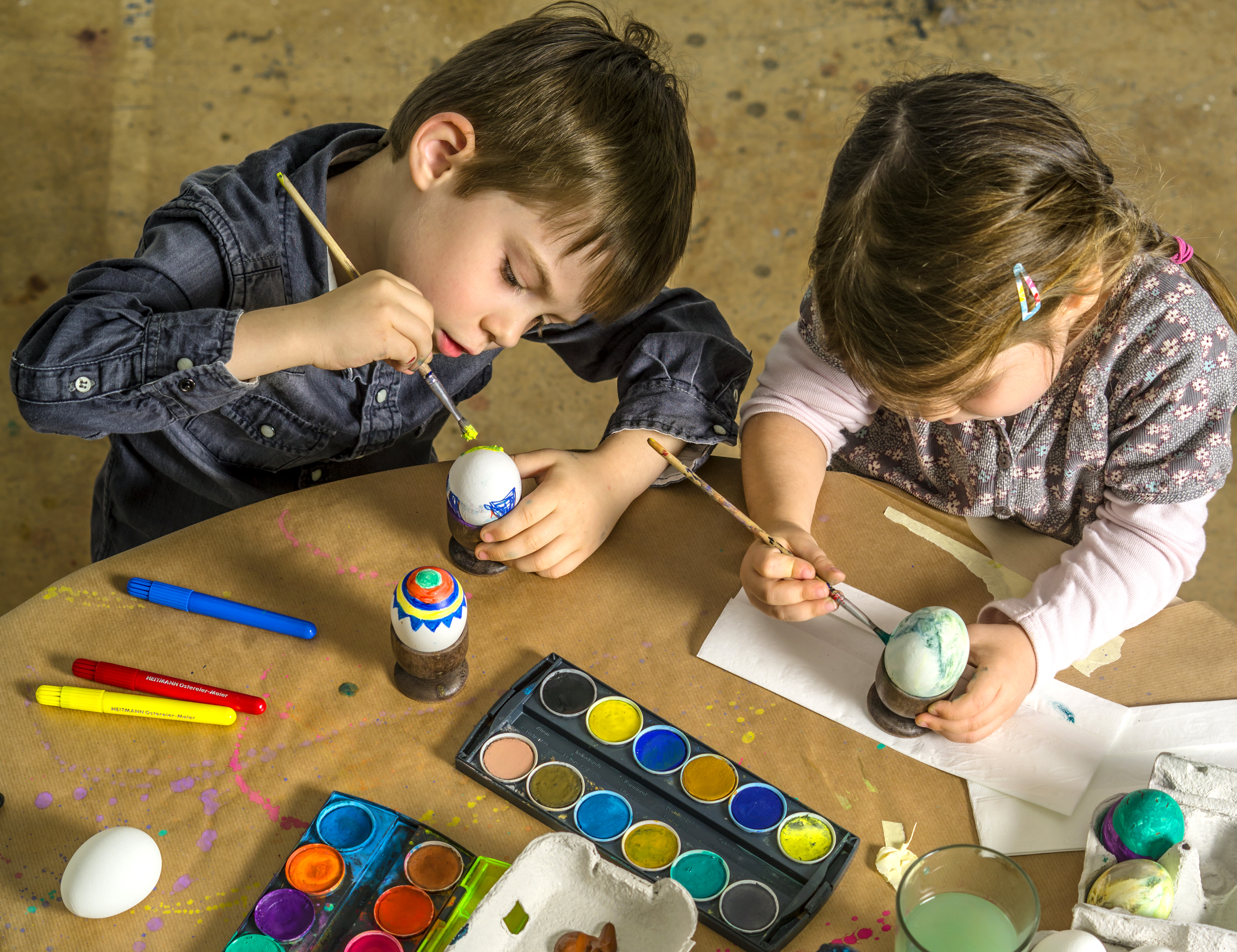 Brother and sister decorating Easter eggs Veröffentlicht 17. Februar 2018 am 4500 × 3464 in Brother and sister decorating Easter eggs Photo of a brother and sister painting and decorating hard-boiled eggs for easter.